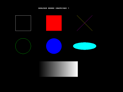 textprintf_ex(screen,font,250,50,couleur,-1,"BONJOUR MONDE GRAPHIQUE !");